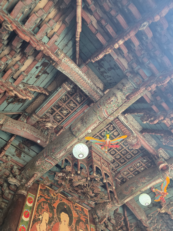 보화루를 지나면 극락보전앞 오색연등이 보입니다. 백중기도 회향하는 날 행사준비로 지장전 앞이 분주한 모습이었어요. 그래도 들어가 우리가 그간 읽은 지장경과 기도를 잠시 마무리하는 시간을 가졌어요.