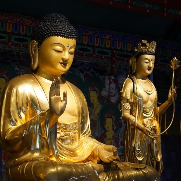 관세음보살은 중생의 고통 소리를 들으시는 보살님이에요. 관세음이라는 이름 자체가 세상의 소리를 관한다는 뜻인데, 누군가 괴로워하며 관세음보살을 부르면 즉시 그 소리를 듣고 달려와 구해주신다고 해요. 자비의 화신으로 알려진 관세음보살은 33가지 모습으로 변화하여 중생을 제도하신다고 전해져요. 아이를 원하는 사람에게는 아이를 주시고, 병든 이에게는 건강을 주시며, 두려움에 떠는 이에게는 용기를 주시는 분이랍니다.