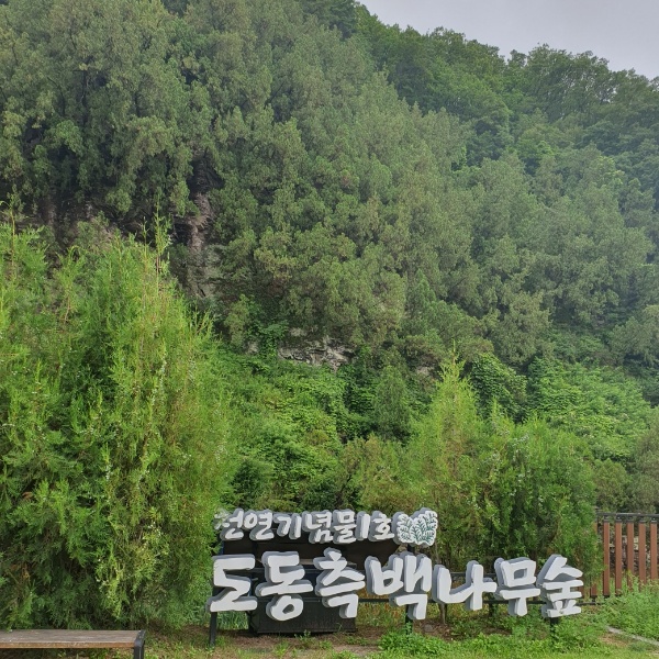 대구 향산의 측백수림은 절벽에 뿌리를 내리고 있어 대구 10경의 하나이며 대한민국 천연기념물 1호입니다. 불로동 이시라 폴리스에서 멀지 않은곳에 팔공산 드라이브 가는 길에 들려 보기 좋은 대구 도동 측백나무 숲입니다.