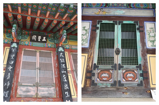 대웅전 옆에 자리한 삼성각입니다. 작지만 반듯한 문살이 보기 좋아 사진에 담아봤습니다. 근자에 지어졌다고는 하지만 세월이 느껴지는 단청입니다.