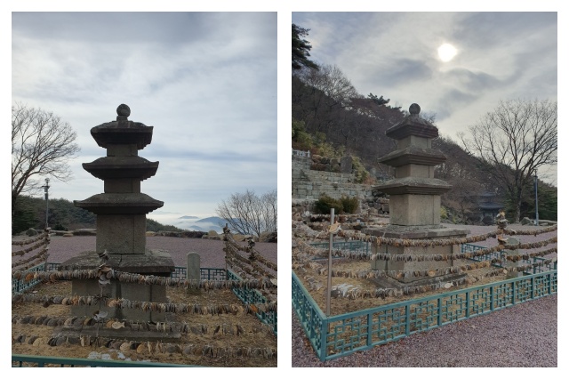 만어사는 새로이 지어져 그리 오래된 곳은 아니지만 대웅전 앞 삼층석탑은 유구한 세월을 보내고 그 자리에 있습니다. 종석으로 만들어졌는지 두들겨보면 종소리 난다고 합니다. 고려중기에 만들어졌으며 보물 제466호로 지정되어 있습니다.