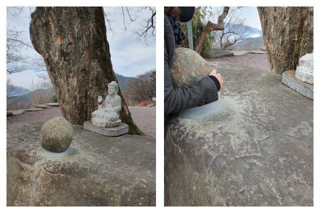 계단을 올라 절마당에 오르면 여러분들이 웃으며 얘기꽃을 피우고 있는 곳이 있습니다. 수박크기의 소원돌이 있는데 복전을 넣고 소원을 빈다음 들어 올립니다. 근데요 이거 해보셔야 합니다. 소원 빌고 나서 들어 올리는데 다른 느낌이 듭니다. 놀래서 눈이 동그래졌습니다. 올 한 해 건강과 좋은 일 빌어봅니다.