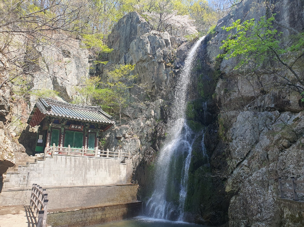 홍룡폭포 관음전 앞에서 바라보는 것도 좋은데 관음전 안에서 옆문을 열고 바라보니 넋을 놓고 보게 되니 꼭 문고리 붙잡고 보고 오세요.