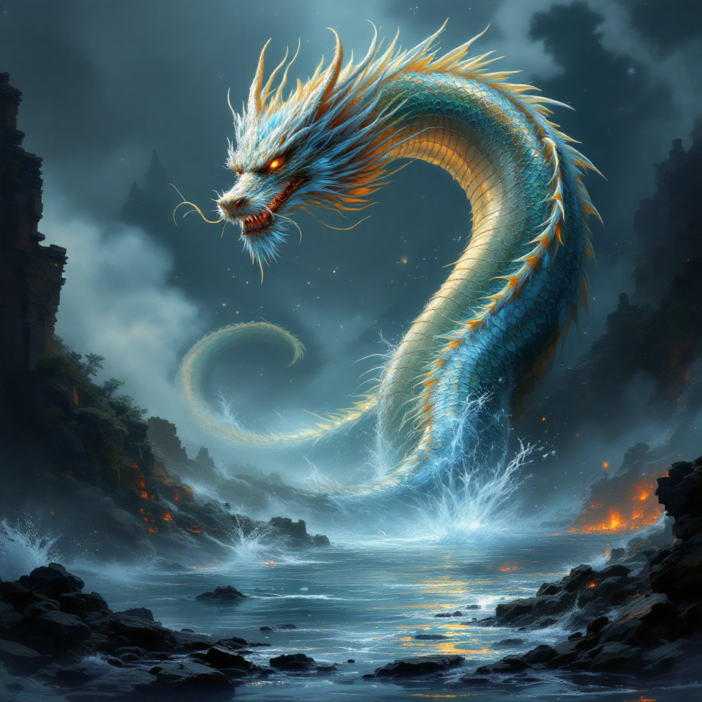 하지만 용이 물속에서 힘차게 솟구치는 꿈이라면, 곧 강한 변화가 있을 수 있어요. 이는 좋은 기회일 수도 있지만, 동시에 준비되지 않은 변화를 의미할 수도 있기 때문에 신중하게 행동하는 것이 필요해요.