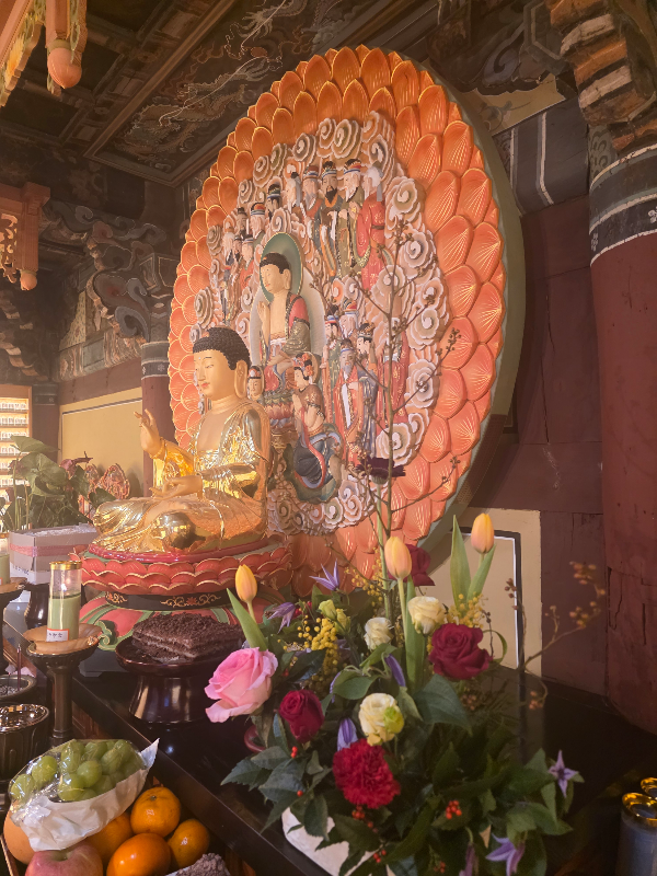이날만 이런 건지 그동안 제가 이른 시간에 들려서인지 생경한 모습에 활짝 열린 전각들 사이에서 빼꼼히 들여다보기도 하고 합창단분들 연습하시는 찬불가 소리도 처음 들어보았어요.