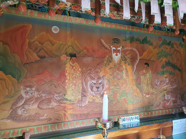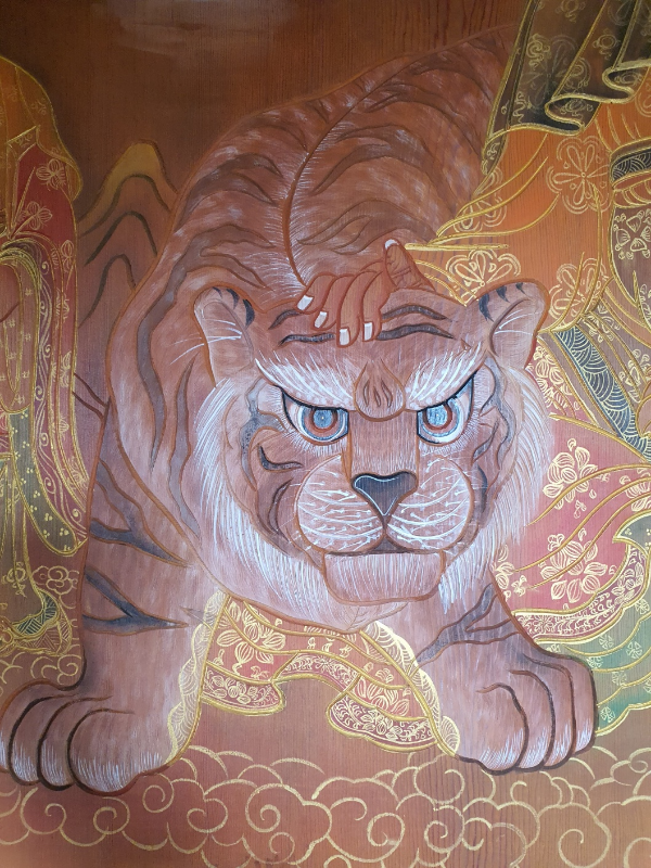 산신각과 명부전은 한국 불교 사찰의 특유한 전각으로 불교의 토착화 과정에서 민간신앙과 함께 잘 어우러진 모습을 보여주는 전각들입니다. 귀여운 호랑이도 여러 마리가 그려져 있는 모습은 처음이인 산신각 탱화는 목판에 조각되어 생생함이 남달랐어요.