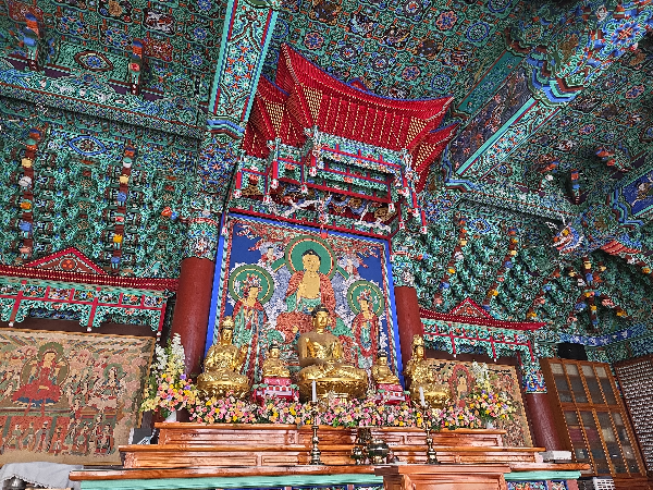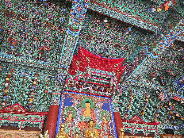 사찰에가면 전각마다 닫집과 천장의 무늬 보기를 좋아하는데 연등으로 가려진 모습이 아쉬울때가 많은데 연등이 없어 너무 좋았어요. 어느하나 허투루 놔둔곳 없이 애써 꾸며놓은 단청을 여느 사찰보다 한참을 바라보았어요.