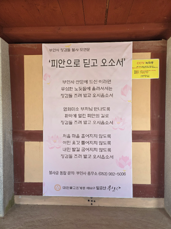 큰길에서 멀지않고 주차 편리하고 주차후 사진속 길만 걸오오르면 바로 사찰입구입니다. 오늘 팔공산 드라이브 나서신다면 부인사 들려 걷다가 앉았다가 잠시 머물러 가시면 좋을것 같아요.