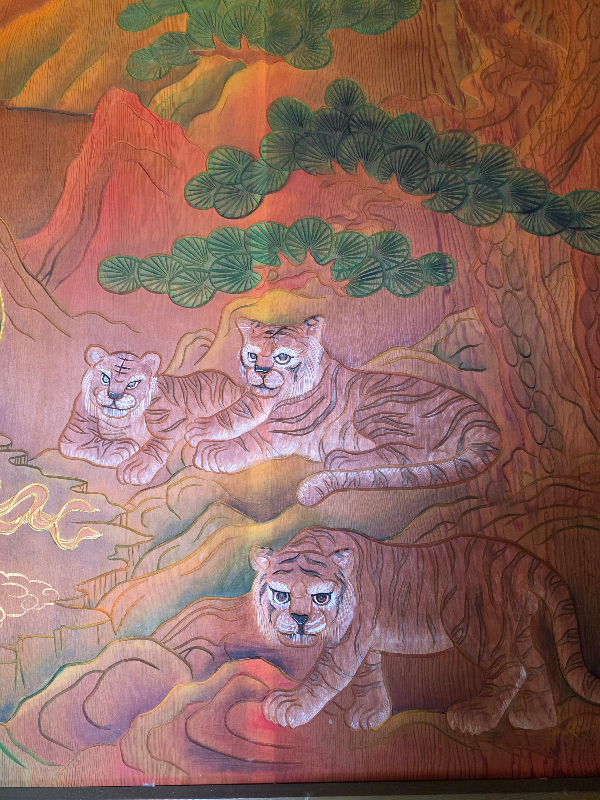산신각 탱화는 나무 조각으로 되어있어요. 산신할아버지와 호랑이 보는 재미가있는데 귀여운 새끼호랑이들도 잘 표현이되어있어요.