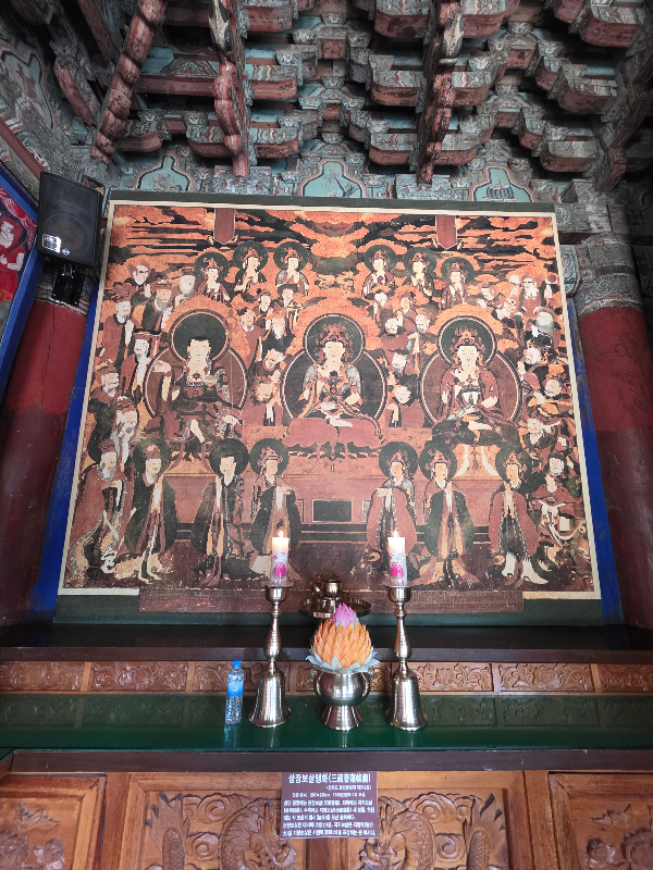 우리가 아직 깊은 신앙으로 날만다 철마다 기도 때 동참할 순 없지만 이번에는 백중 맞아 각자 지장경 읽고 기도하는 시간을 가졌는데 회향하러 왔으니 삼장보살탱화 앞에서 독송하고 기도하는 시간을 가졌어요.