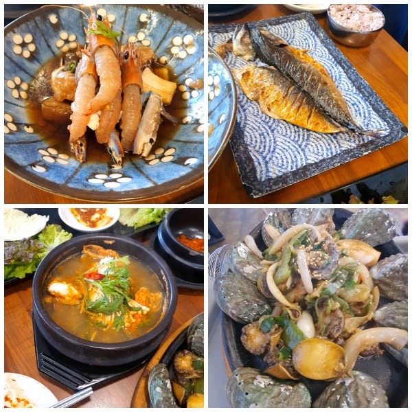 통으로 길게 나오지는 않지만 6명 인원에 맞게 갈치구이와 조림, 전복 버터구이, 고등어구이, 해물탕까지 푸짐하게 종류별로 맛볼 수 있어 좋았습니다. 6명 모두 입맛이 달라 갈치속젓 못 드시는분, 고등어 안 드시는 분, 갑각류 알레르기 있는 분까지 식성 따지더라도 모두를 아우를 수 있는 푸짐하고 맛있는 첫 식사였습니다.